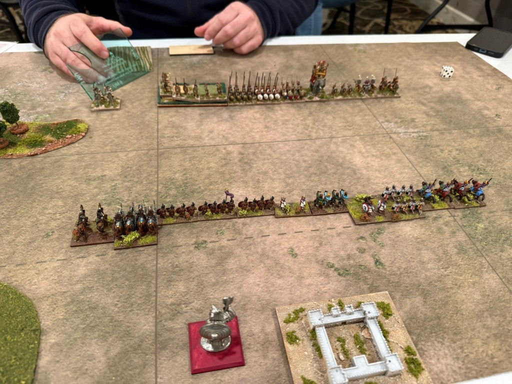 On Friday I got in a demo game and later that evening I was graciously given a loaner army (Medieval German Princes) to play in the Baltic Powers tournament (army lists restricted to that particular conflict region).