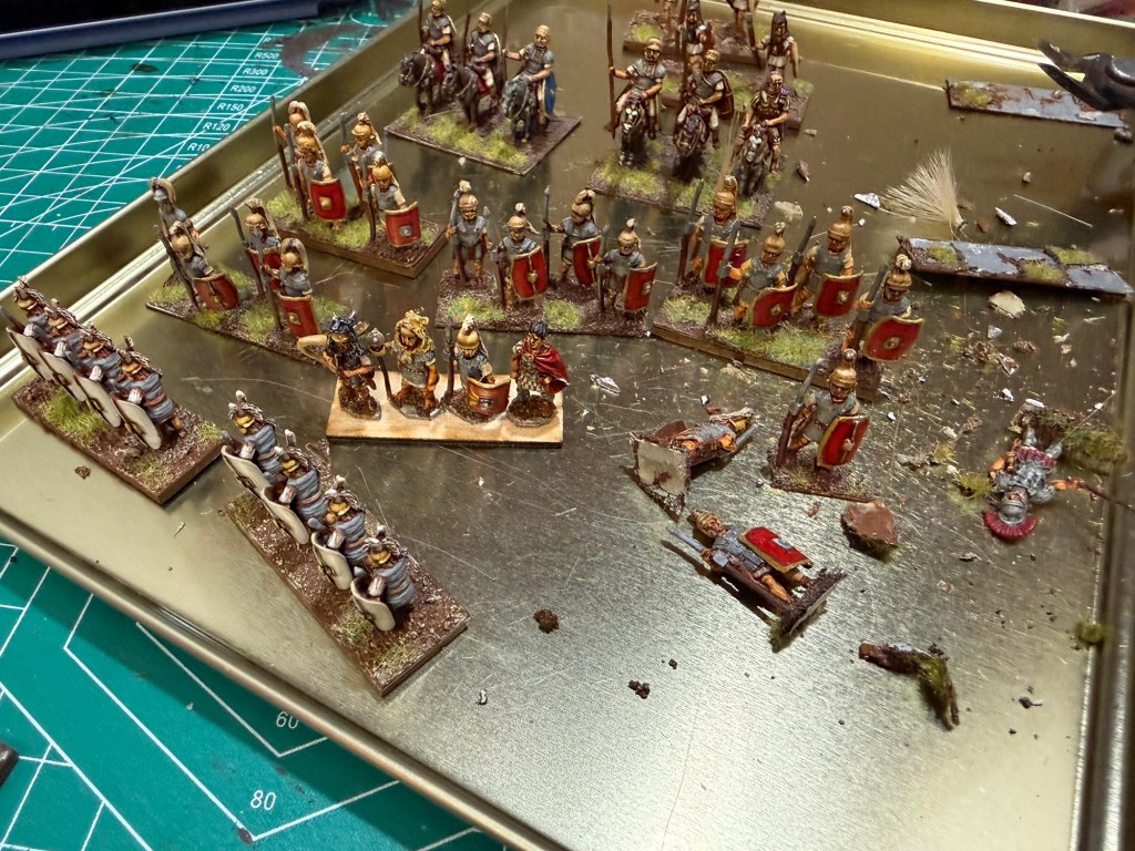 In the last week I rebased my Marian Romans and got my minis from Eureka to replace missing legionaries and create a mule pack camp. I’ll post pics as soon as that’s all done. On the skirmish front, I finished my 500pt retinue for Barons’ War and got in a learning game—great fun!