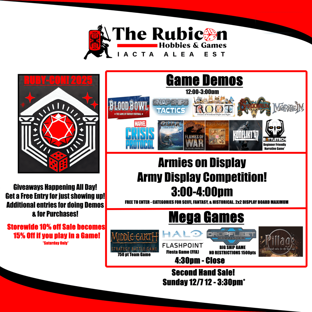I’ll be hosting demos of Triumph! on December 6th at a local mini-convention as well as a Pillage scenario later in the day.